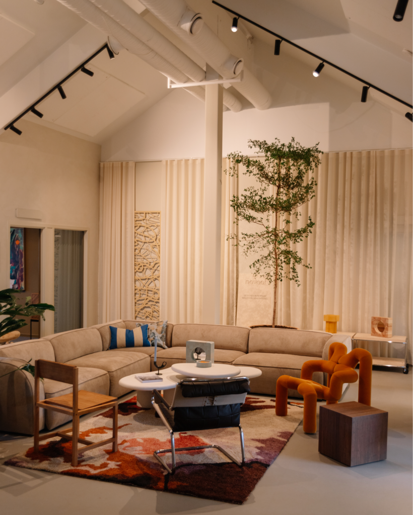 Et åpent, varmt og innbydende rom som setter tonen for hele opplevelsen hos Novooi. Her møter vintage det kontemporære, og ikonisk norsk design forenes med samtidsobjekter. I Loungen inviterer vi til arrangementer og møter i en uformell kontekst der designobjekter får puste og komme til sin rett. Alt du ser her kan bli en del av ditt eget hjem, kontorfellesskap, eller offentlige rom.