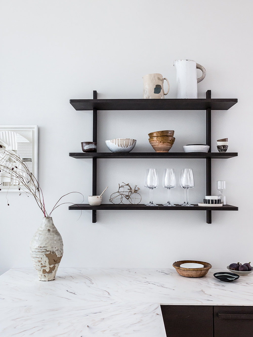 A7 Cross Shelf er en åpen vegghylle i bambus med kryssformet inndeling som skaper små rom for glass, servise og andre hverdagsobjekter. Den minste varianten er godt egnet over kjøkkenbenken eller på mindre veggflater, mens den større utgaven kan henge som et markant element alene. Den åpne konstruksjonen gjør at hyllen oppleves lett på veggen, samtidig som kryssinndelingen gir orden og struktur til det du oppbevarer.