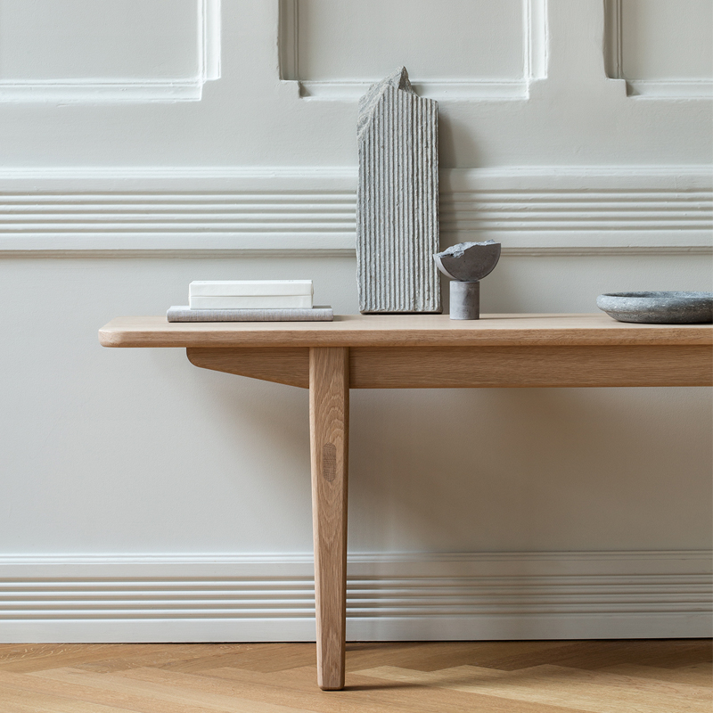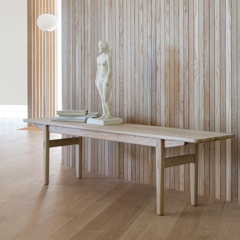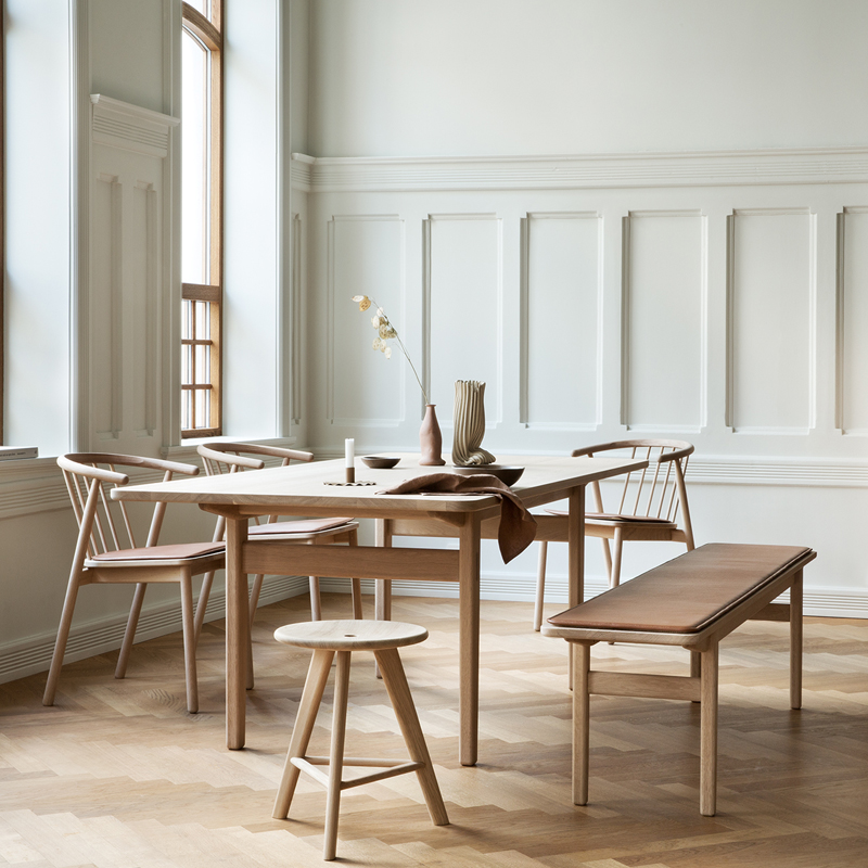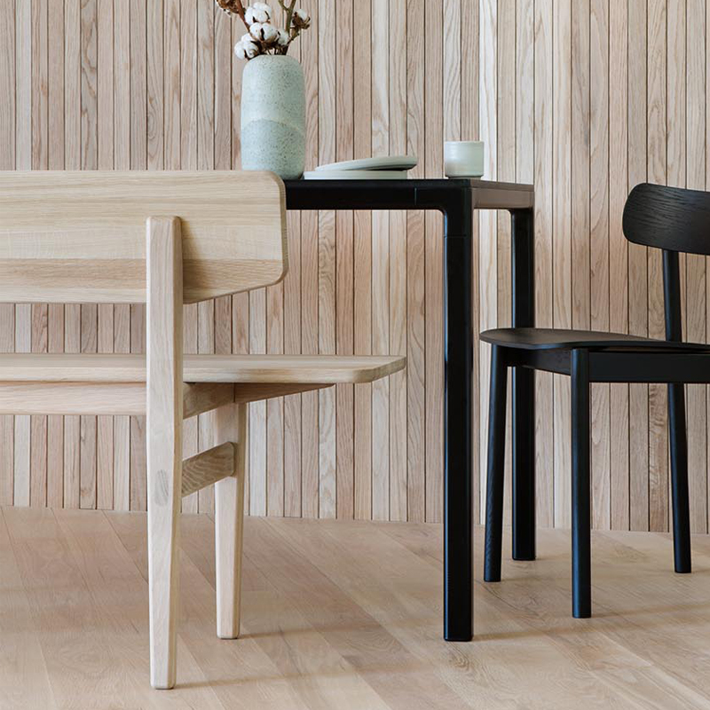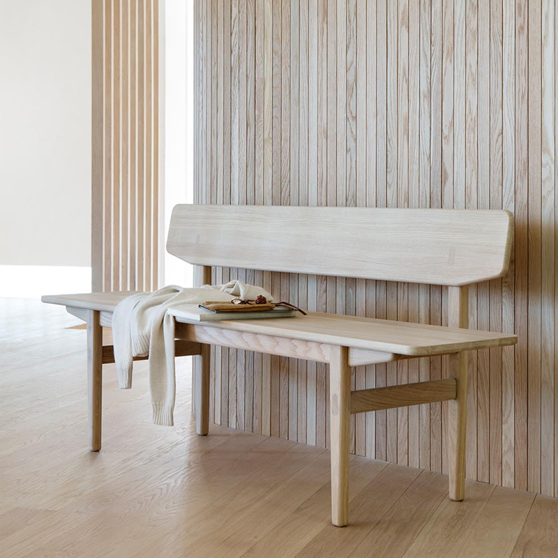 Bjelke benk designet av Andreas Engesvik er en robust spisebenk i heltre eik som matcher Bjelke langbord og andre solide eikebord. Den lange sitteflaten gir fleksibel sitteplass til flere personer, og varianten med rygg gir ekstra komfort ved lange måltider. Benken passer like godt ved spisebordet som i entré, gang eller under et vindu. Et godt alternativ når du vil ha spisebenk i eik, benk til spisebord eller en fleksibel sitteplass med norsk design.