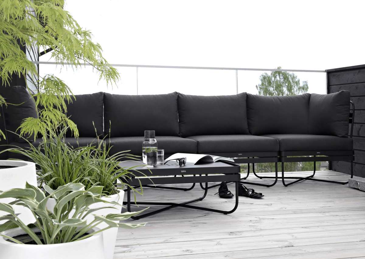 Størrelsen passer godt som avlastningsbord i en loungegruppe eller som et lite bord på terrasse og balkong. Bordet leveres i flere metallfarger som matcher rammene i Bris-serien.