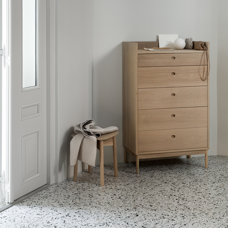 Dal kommode designet av Andreas Engesvik er en kommode i heltre eik med hvitoljet overflate som gir et rolig og tidløst uttrykk. De dype skuffene gir god plass til klær, tekstiler eller småting som trenger fast plass i gangen, på soverommet eller i stuen. Den enkle fronten og de rene linjene gjør at kommoden glir naturlig inn i både moderne og klassiske interiører. Et trygt valg for deg som ser etter kommode i heltre eik, norsk designkommode og møbler med lang levetid.