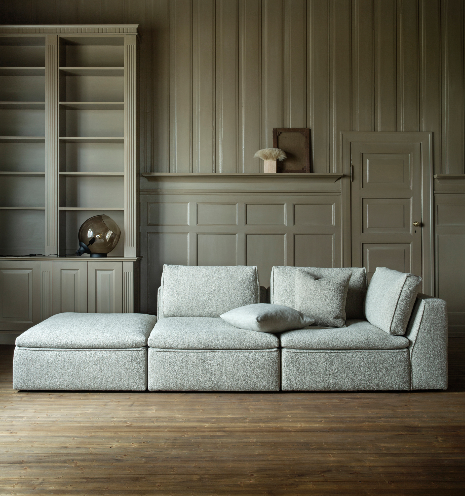 Modulene kan speilvendes og flyttes rundt, slik at sofaen enkelt kan tilpasses romløsningen over tid uten at man må bytte ut hele møbelet. Favn 95 kan bestilles i flere tekstilgrupper, og de lavere prisgruppene gir et robust og prisbevisst valg uten å gå på kompromiss med komfort. Fordi ryggputene bestilles separat kan sofaen tilpasses ytterligere etter ønsket sittekomfort og uttrykk.