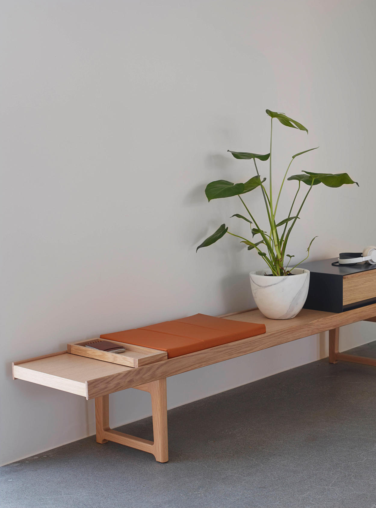 Krobo Cushion er en setepute tilpasset Krobo-benkene, utviklet for å gi litt ekstra komfort uten å endre benkens rene uttrykk. Puten er laget for å ligge stabilt og passer fint både til kortere pauser i gangsonen og som ekstra sitteplass ved bordet. Den kan kombineres med annet Krobo-tilbehør, og er enkel å ta av ved rengjøring eller når du vil ha en mer minimal flate. Velg materialvariant etter ønsket uttrykk og bruk.