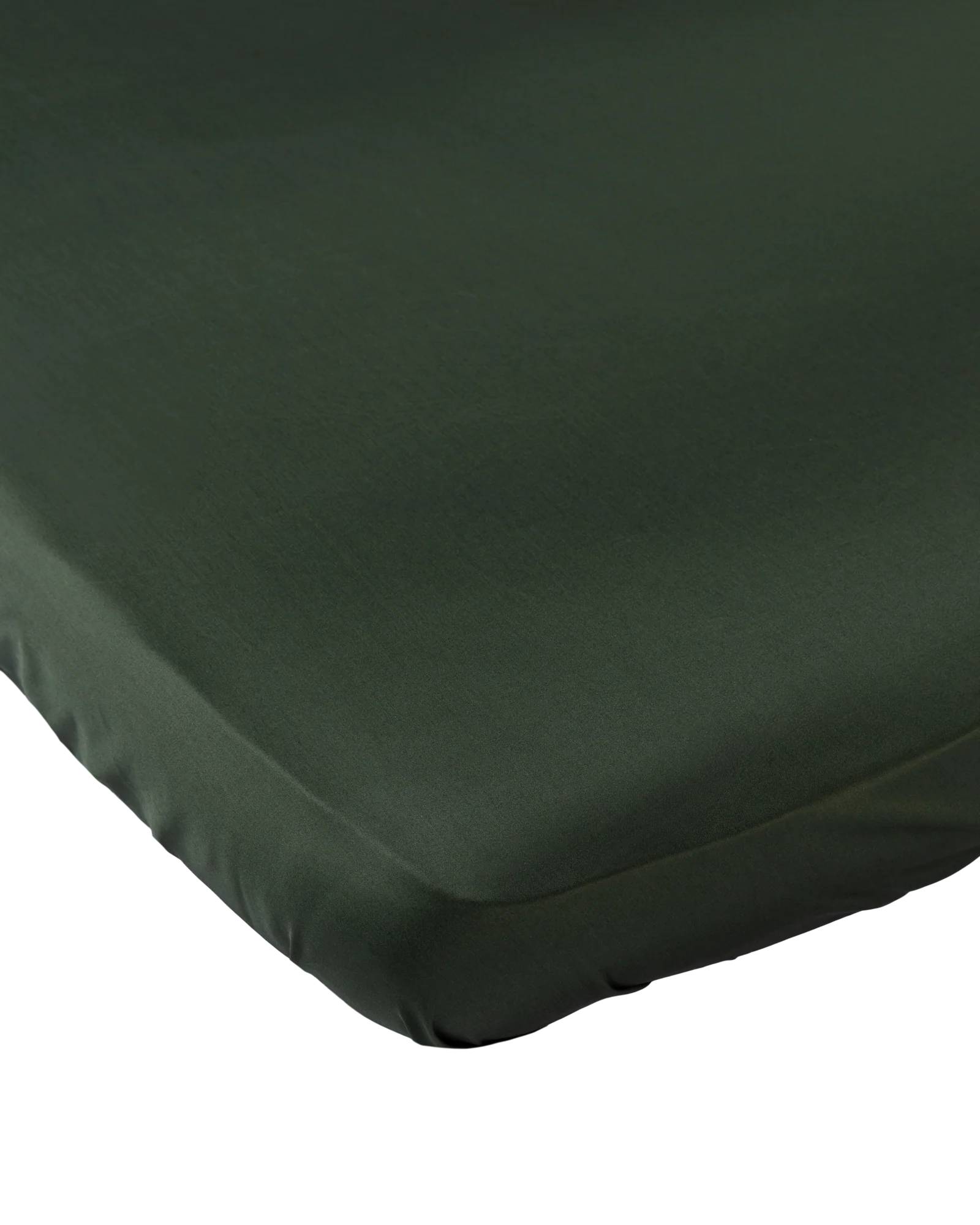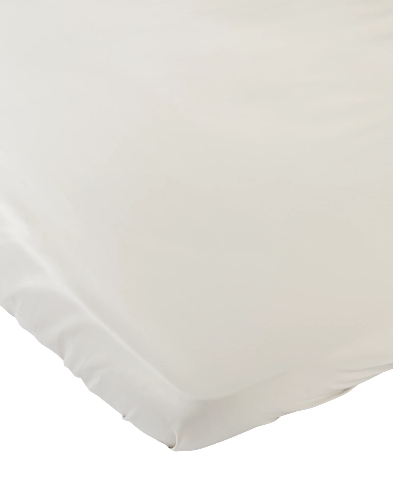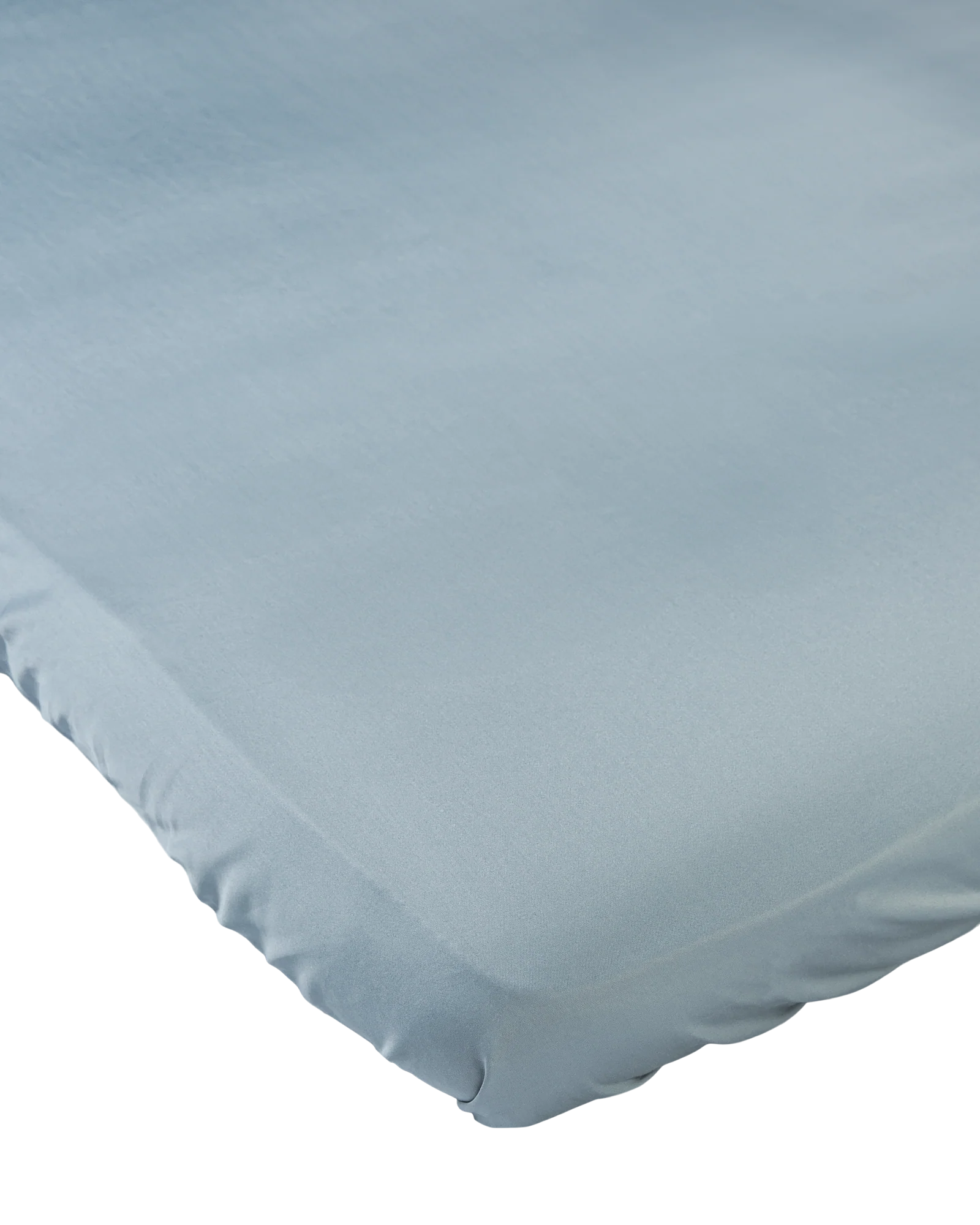 Abates formsydde laken er sydd i den samme satengvevde Giza-bomullen som resten av sengetøyet, og gir en glatt og behagelig overflate å sove på. Strikk i kortendene og rundt hjørnene sørger for at lakenet sitter pent rundt overmadrassen og holder seg på plass gjennom natten. Stoffet er luftig og lett, men tettvevd nok til å føles eksklusivt og holde seg fint over tid.