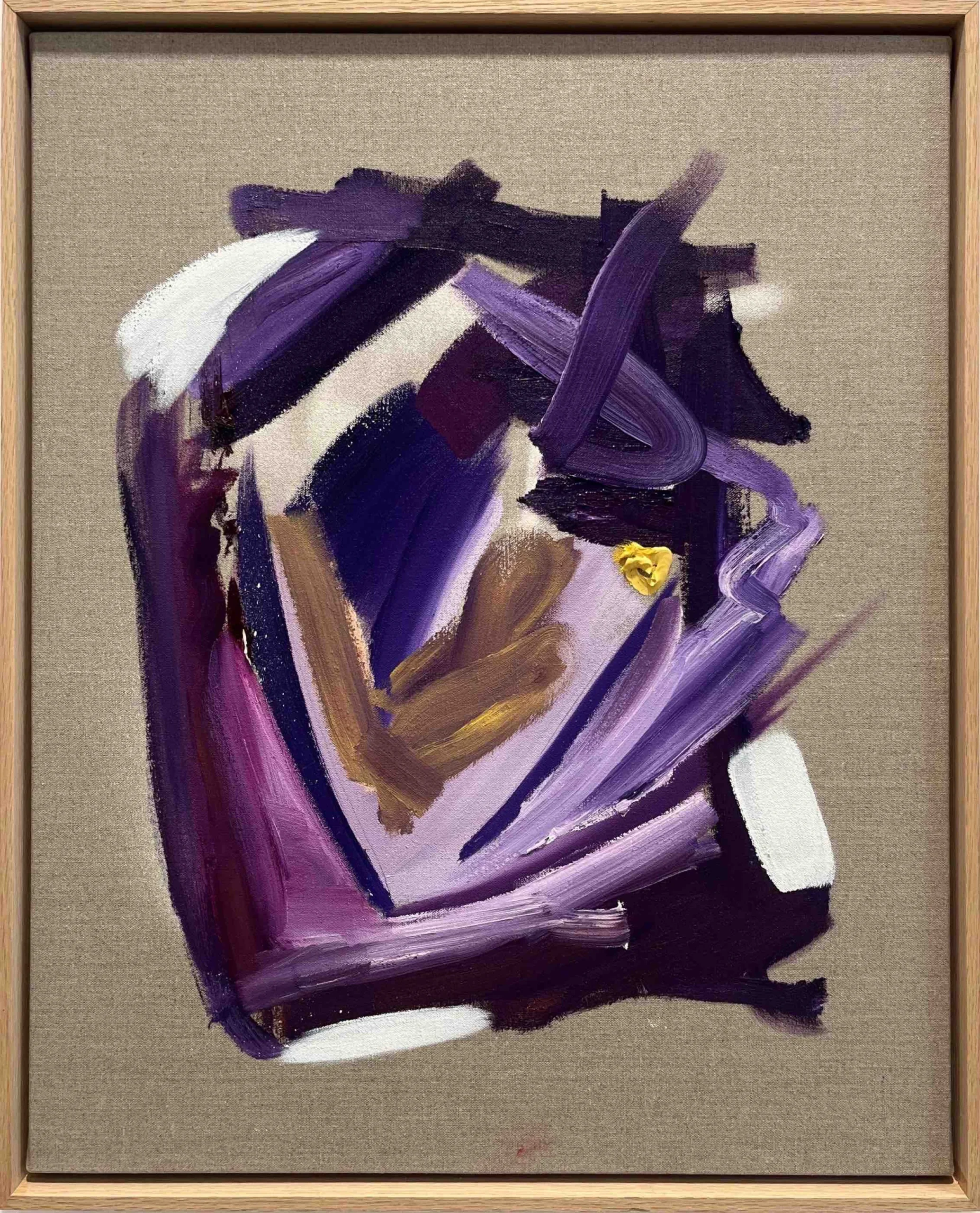 «Linjebrudd» av Lars Gangdal er utført i olje, spray og blyant på lin og rammet inn i eik. Et uttrykksfullt verk med lagvis oppbygning og markerte linjer. Formatet gjør det fleksibelt for ulike rom.