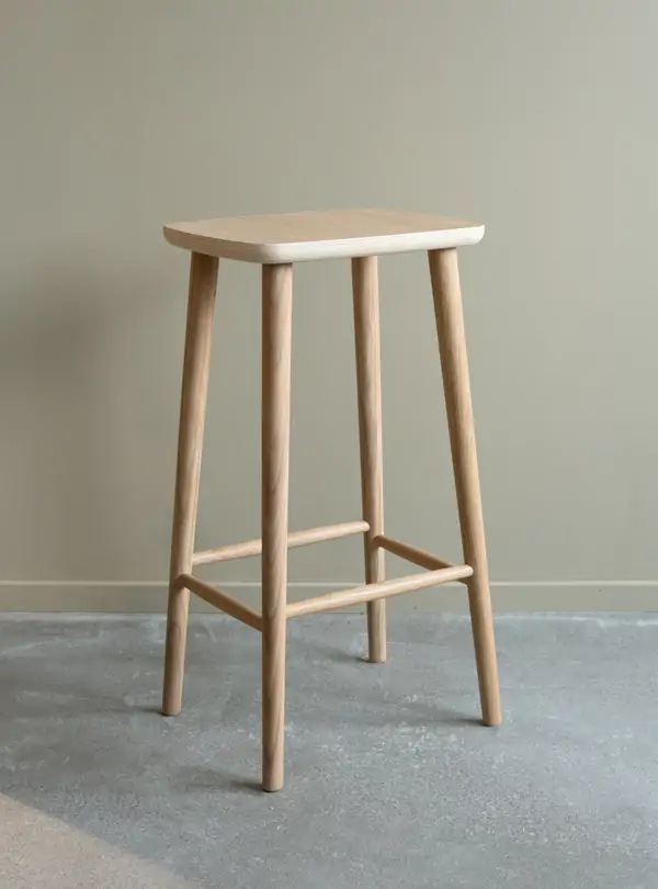 Non inngår i en større serie og leveres i to høyder for ulike bruksområder – lav krakk og barhøyde. Treverket er behandlet for å fremheve strukturen og få et naturlig, varmt preg, og finishene gir deg mulighet til å matche resten av interiøret. Bruk den alene, i par eller sammen med øvrige Non-produkter for en helhetlig stil.