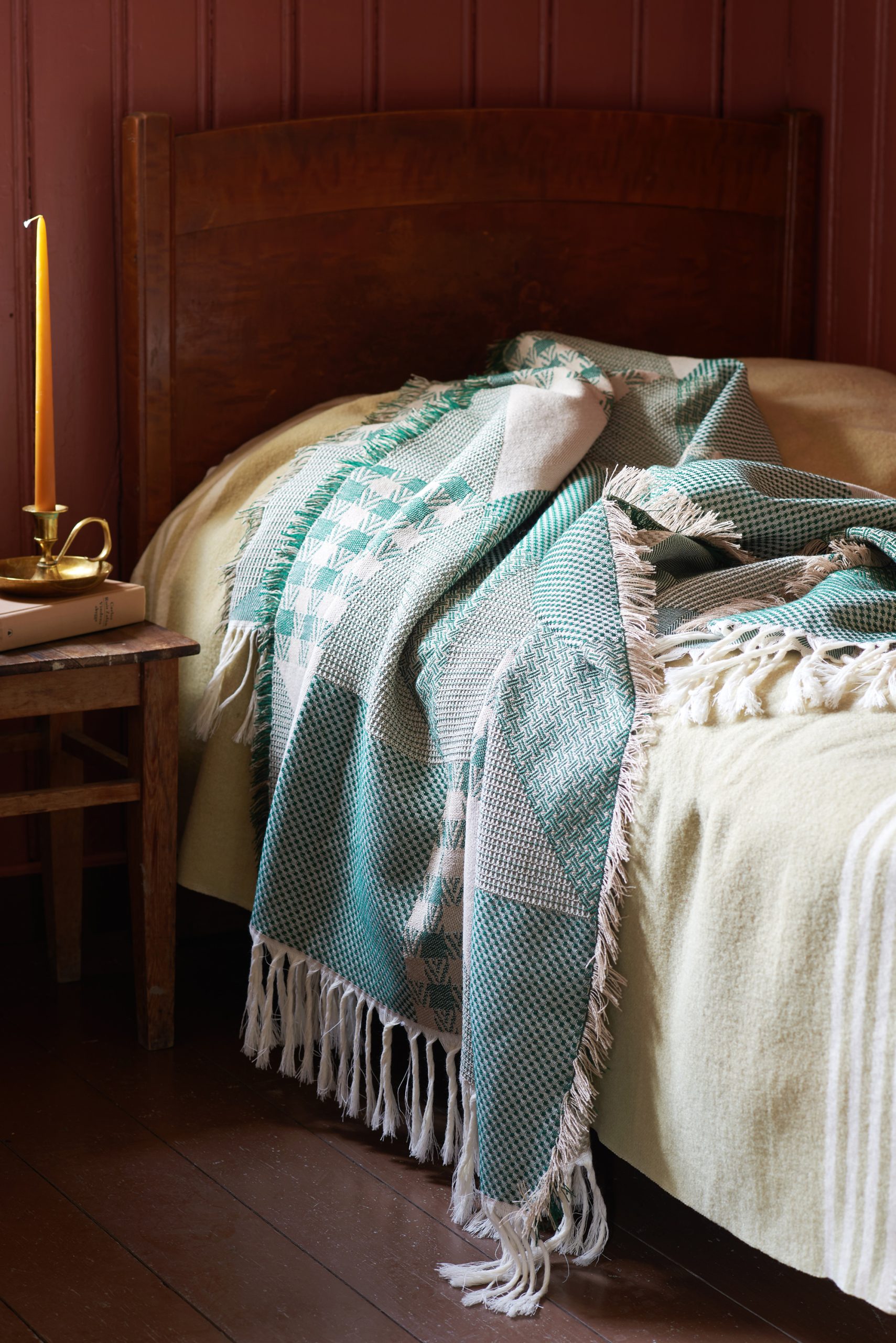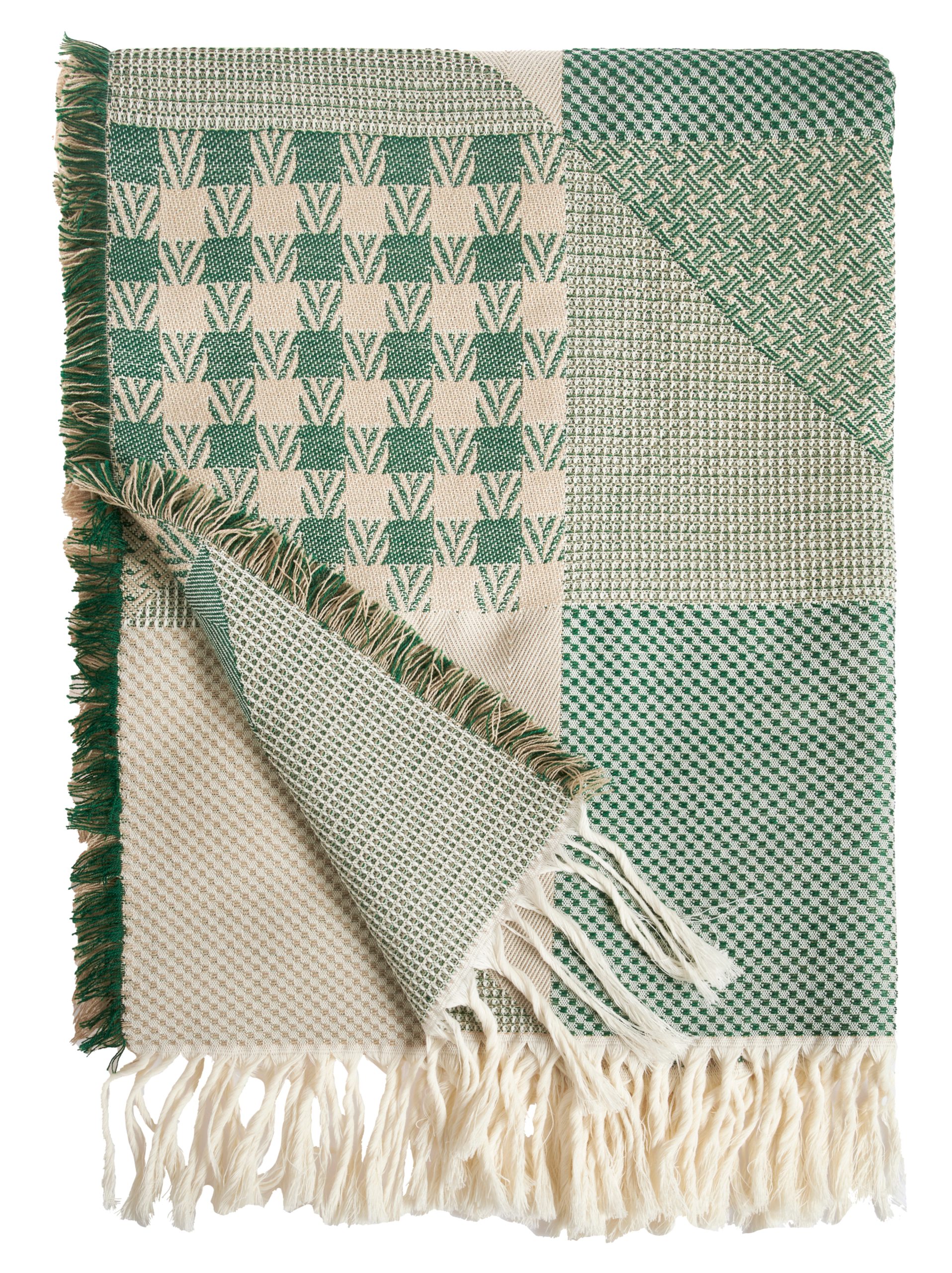 Pleddet består av ruter i ulike bindeverv og farger, som sammen skaper et levende og taktilt uttrykk. Det er vevd i 100 % myk Merinoull – lett, delikat og helt kløfritt.