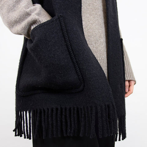 Pocketscarf er et langt skjerf i 100% norsk lammeull med integrerte lommer på hver side. Designet kombinerer funksjon og varme ved at lommene kan brukes til å varme hendene eller til små ting på farten. Den relativt smale bredden gjør det lett å legge rundt hals og skuldre uten at det føles tungt. Ullkvaliteten gir god isolasjon samtidig som den er pustende, slik at skjerfet fungerer godt både til bybruk og tur. Lengden gir flere muligheter for å style skjerfet på ulike måter. Pocketscarf er et praktisk tilbehør som gir ekstra komfort på kjølige dager.