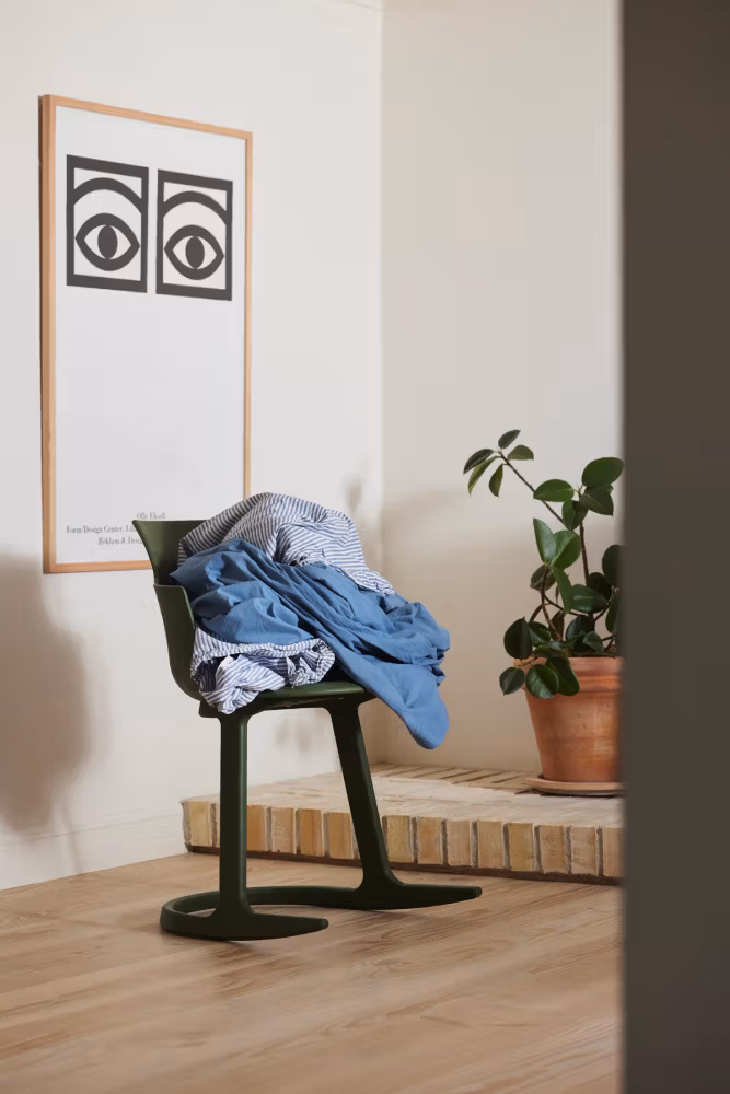 Stolen passer like godt rundt spisebordet som i møterom og kreative soner. Velg mellom flere farger og mulighet for setepute i kvalitetsstoffet «Jacket Re-Wool 198». Minimalistiske detaljer og solid konstruksjon gjør at stolen tåler flittig bruk over tid. Gratis frakt i Norge og 10-års garanti fra produsenten.
