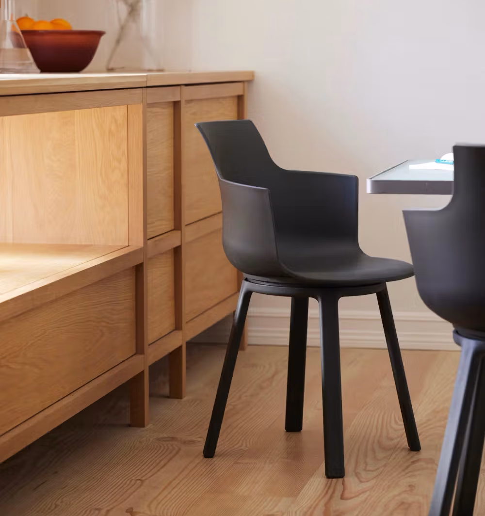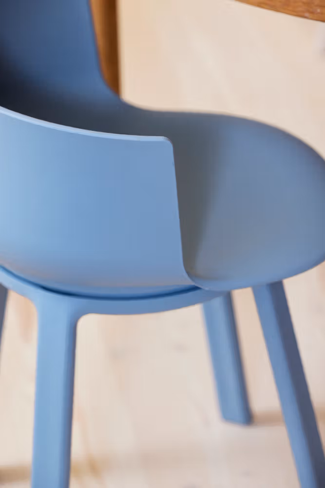 Social Turn er en moderne spise-/møtestol som inviterer til aktiv sitting i hverdagen. Skallet er støpt for lav vekt og høy slitestyrke, og stolen er designet for enkel resirkulering med færre materialer. Sitteopplevelsen er balansert – du kan bevege deg lett uten å miste støtte.