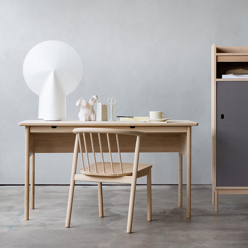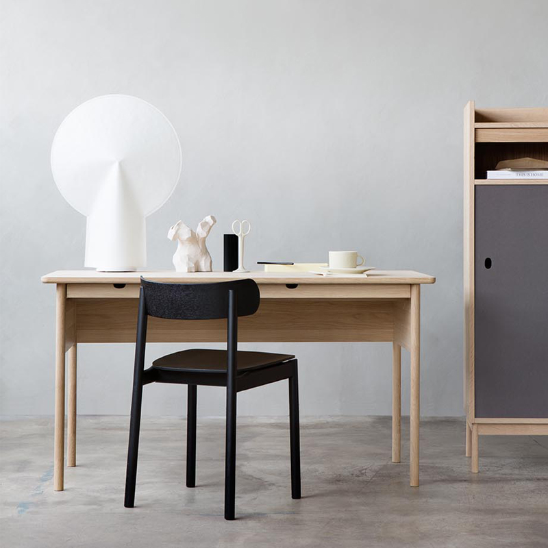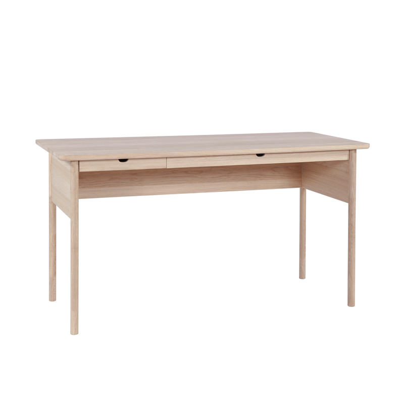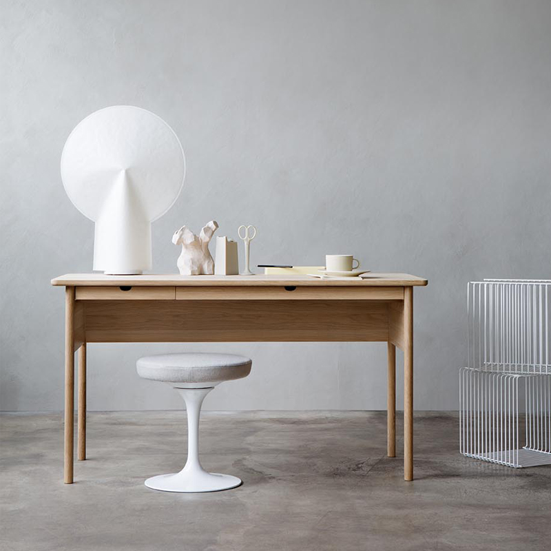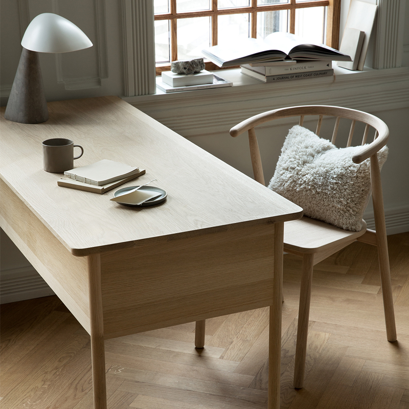 Vår skrivebord designet av Andreas Engesvik er et skrivebord i heltre eik for deg som vil ha en arbeidsplass med lett og luftig uttrykk. De slanke beina og den smale bordplaten gjør at bordet ikke dominerer rommet, samtidig som det gir nok plass til laptop, papirer og enkel oppbevaring. Passer fint i hjemmekontor, stue eller som lite konsollbord i gangen. Et godt alternativ når du ser etter skrivebord i eik, lite hjemmekontor-bord og norsk designskrivebord.