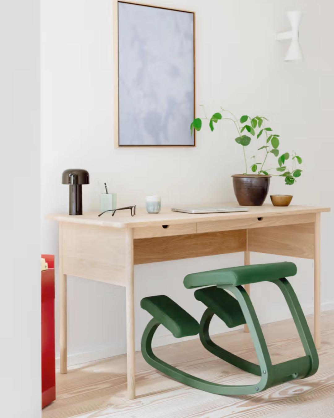Den fremmer aktiv sitting og god holdning, samtidig som designet er minimalistisk og fargerikt.